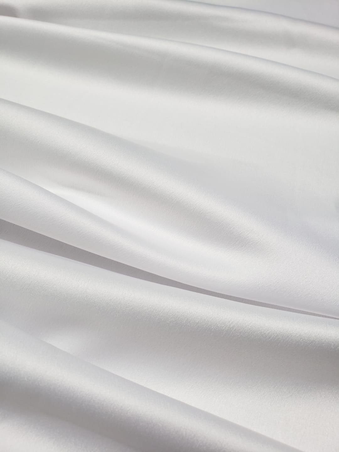 Tecido de poliéster leve e com bom caimento, conhecido por ser bastante versátil por ter um lado acetinado e outro fosco. É usado tanto em moda casual quanto em moda festa para vestidos, blusas, saias e calças, sendo uma escolha elegante que não amassa com facilidade.