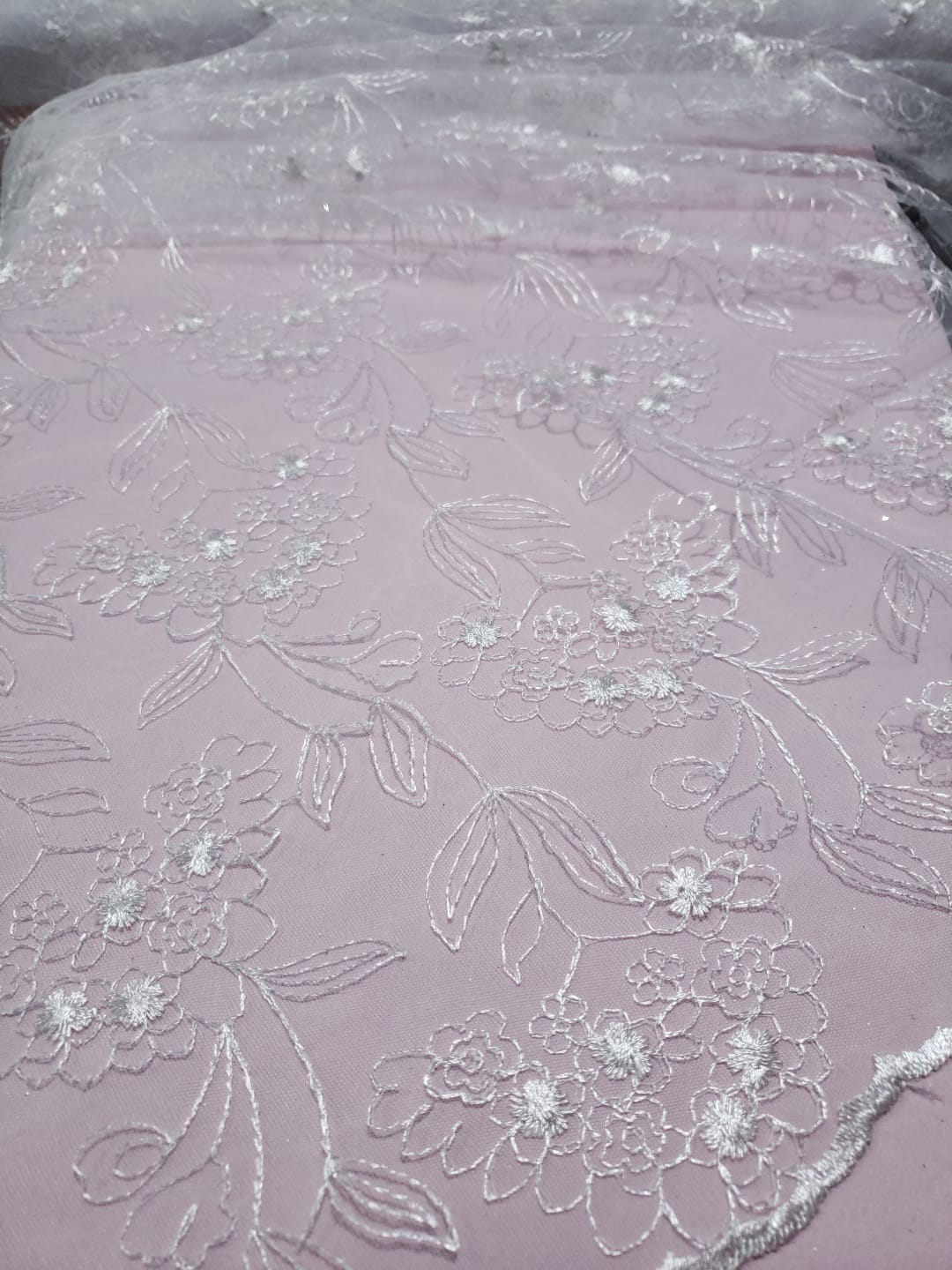 As rendas bordadas aplicadas sobre tules estão sempre presente nos vestidos mais luxuosos da moda noiva e moda festa. Podem aparecer em apenas algumas partes do vestido ou por todo ele. Além disso, também podem ser rebordadas com pedrarias, miçangas e paetês.