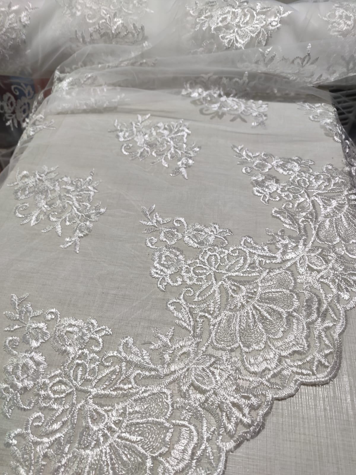 As rendas bordadas aplicadas sobre tules estão sempre presente nos vestidos mais luxuosos da moda noiva e moda festa. Podem aparecer em apenas algumas partes do vestido ou por todo ele. Além disso, também podem ser rebordadas com pedrarias, miçangas e paetês.
